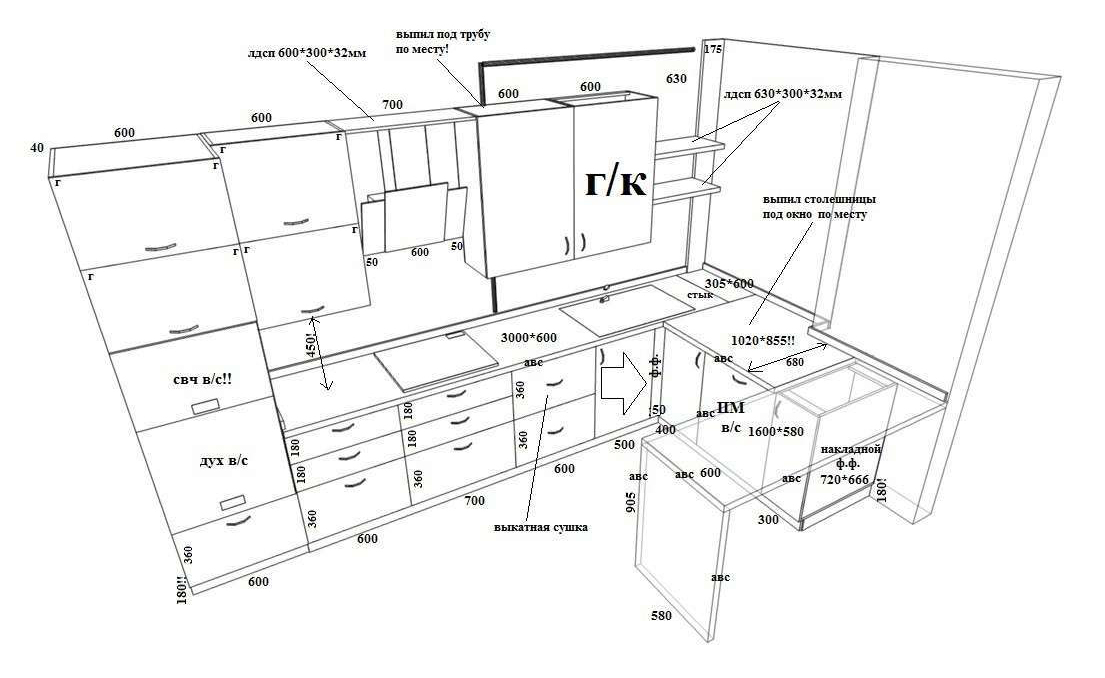 Разводку коммуникаций: вентиляции, водоснабжения, канализация и электроснабжение вашей кухни.
